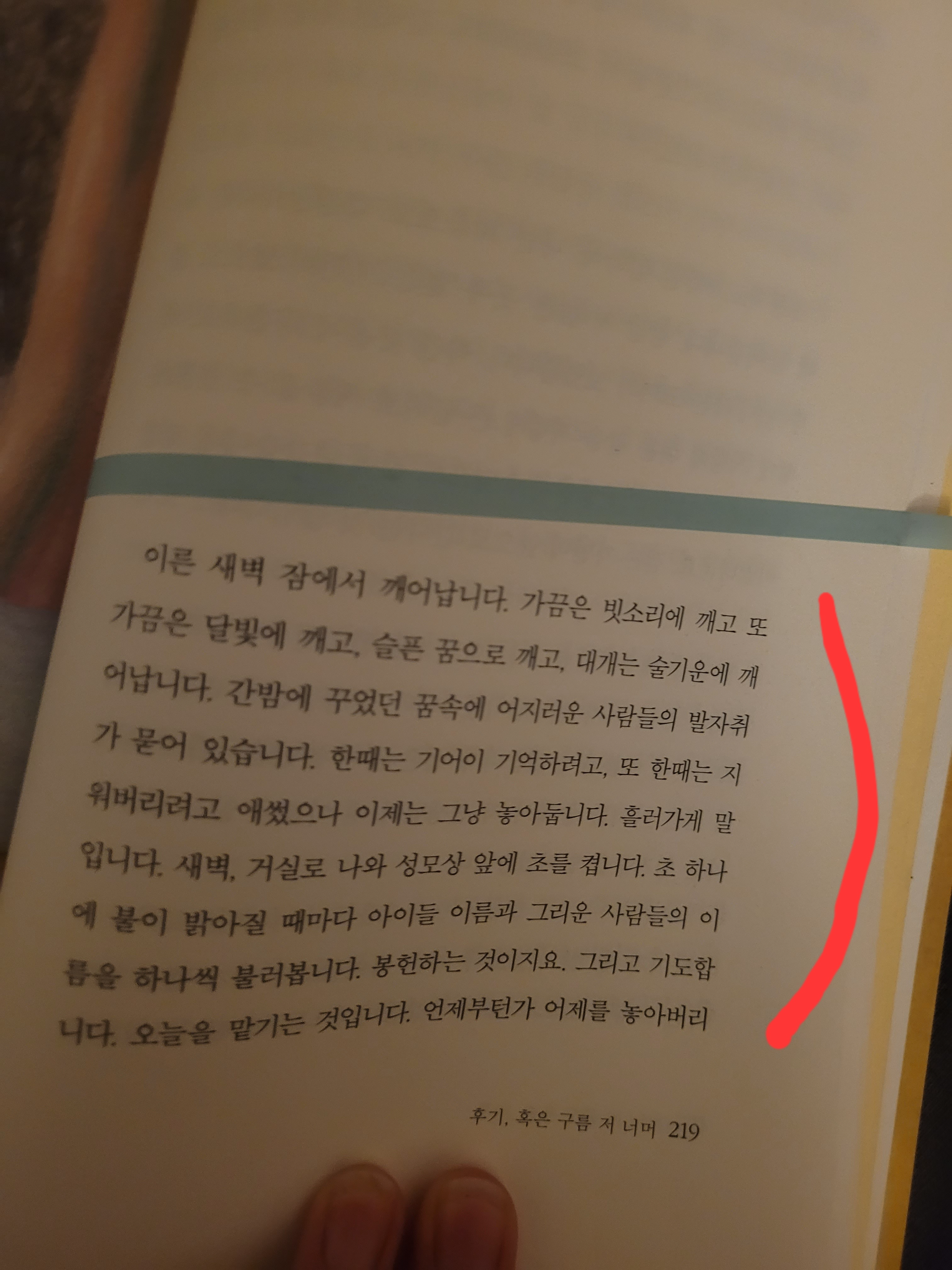 “이른 새벽 잠에서 깨어납니다. 가끔은 빗소리에 깨고, 또 가끔은 달빛에 깨고, 슬픈 꿈으로 깨고, 대개는 술기운에 깨어납니다. 간밤에 꾸었던 꿈속에 어지러운 사람들의 발자취가 묻어 있습니다. 한때는 기어이 기억하려고, 또 한때는 지워버리려고 애썼으나 이제는 그냥 놓아둡니다. 흘러가게 말입니다.”