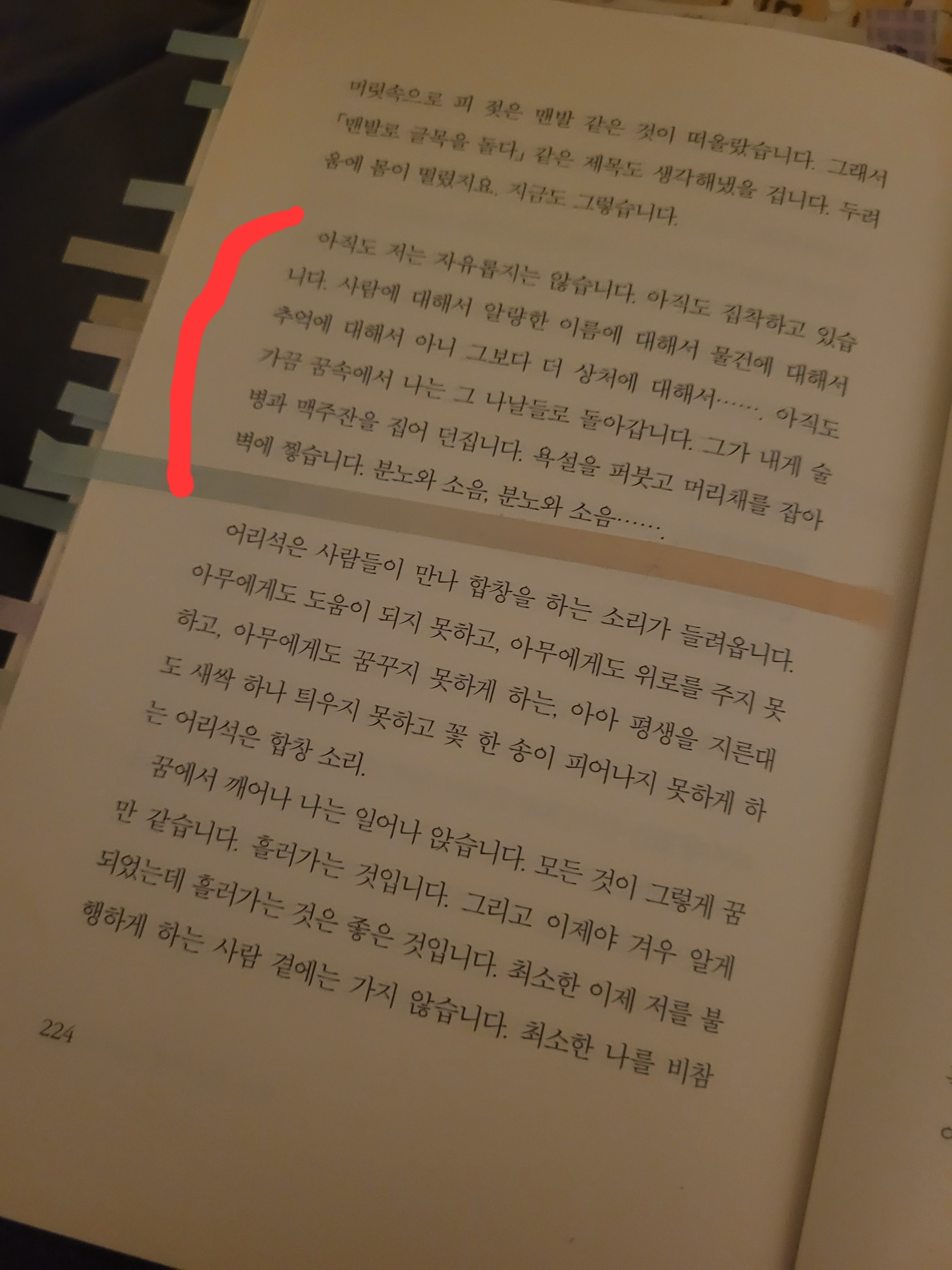 작가가 작문이라는 것을 대하는 자세가 인상깊었던 것이다. 공지영 작가도, 한강 작가도, 글이라는 것은 ‘고통’이라는 감정이 찾아왔을 때 쓰면서 도움이 되기도 하는 것이다. 상담선생님과 대화를 나누면서 어느 날, 나 역시도 작가들의 조언들을 따라 얼마전부터 하루 일정 분량 이상씩 작문을 하는 연습을 하고 있다고 했고 그것이 도움이 되는 것 같다고 말했다. 선생님은 작문이라는 것은 감정이 해소되는 작용을 한다고 하셨다.